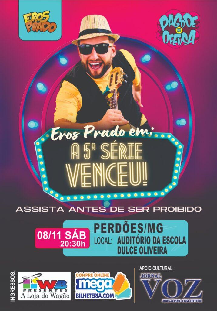 Eros Prado tem arrastado milhares de pessoas em seu Stand Up Comedy, eleito entre os 5 melhores shows de humor do Brasil – o show promete improviso, diversão, interação com o público e esquetes de humor irresistíveis.